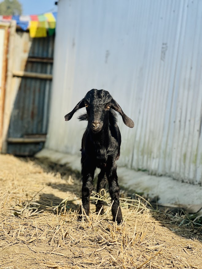 Hii I am Allen.. I was just a few weeks old, still l learning to walk, when they took me away from my mother and told me I was going to be sacred offering for Goddess. They tossed me around as if I couldn’t feel pain, leaving me helpless and scared, thinking my end was near. But then, my angel Sneha came and gently lifted me into her arms. I travelled in an ambulance all the way from Bara to Lalitpur and finally, I arrived at my forever home. Here I am at peace. But I think about all of the innocent beings like me who suffer a lot in the name of superstitious beliefs. I got lucky to be spotted by my guardian angel but what about others who are sacrificed in the name of deity. What a scary world that is. I am extremely grateful to be here with my friend Roberto who was also rescued from Bara with me. Here we also met, Rudrayani, she is pretty and beautiful. We three enjoy our time together, as we share alike story. We would like to request you to support our home, and help it grow in such a way that they can be there for the animals in need. If you want to meet and my friends, kindly visit the sanctuary. We can’t wait to see you. Thank you.