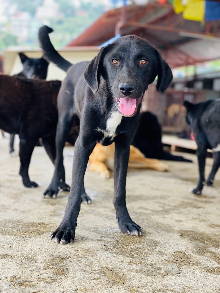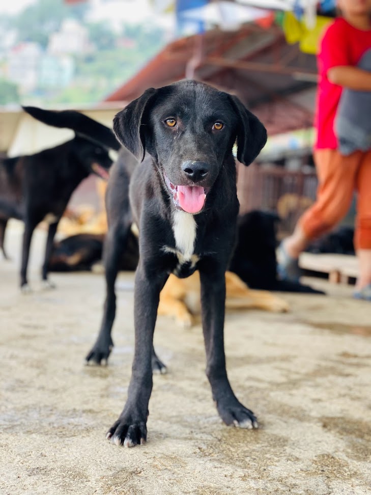 About me: Hey! I am a dark black colored dog, but you can call me Blue since I go by that name. I’m the son of the most famous dog in our shelter. My dad is famous because he is a strong-willed dog. He has been taking care of me and my three other siblings by himself. We used to live in the streets of Thamel, a very hectic area. We were really young and were having difficulty surviving in the streets. We faced food scarcity and we were constantly scared of being bitten by other dogs. Let’s not even get started about the hit-and-run cases. We have witnessed so many deaths, so obviously we had a fear of vehicles running over us. Our life took a turning point when our godmother Sneha saw our condition. She took us all to a shelter where we were able to eat properly, sleep fearlessly, and were loved selflessly.