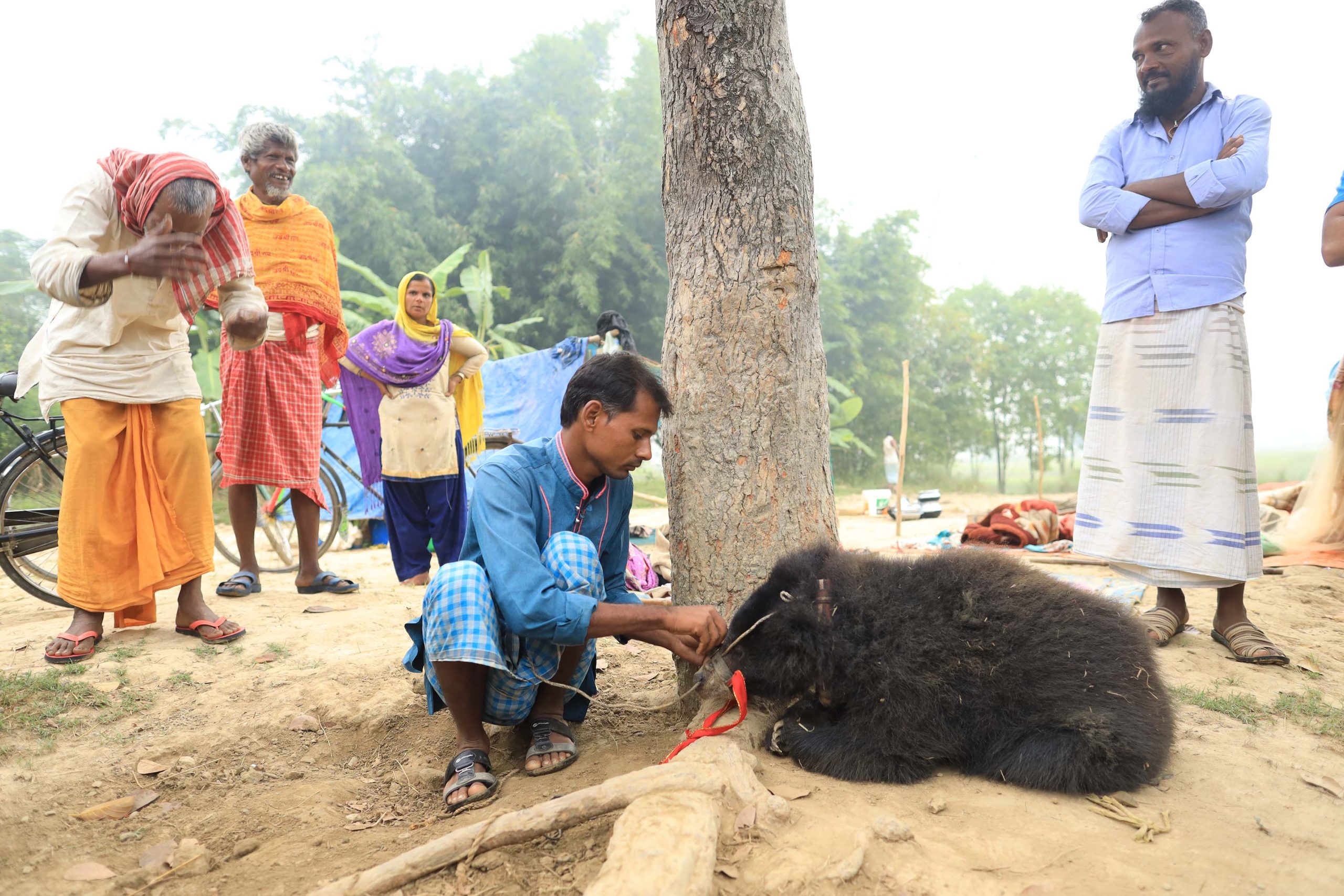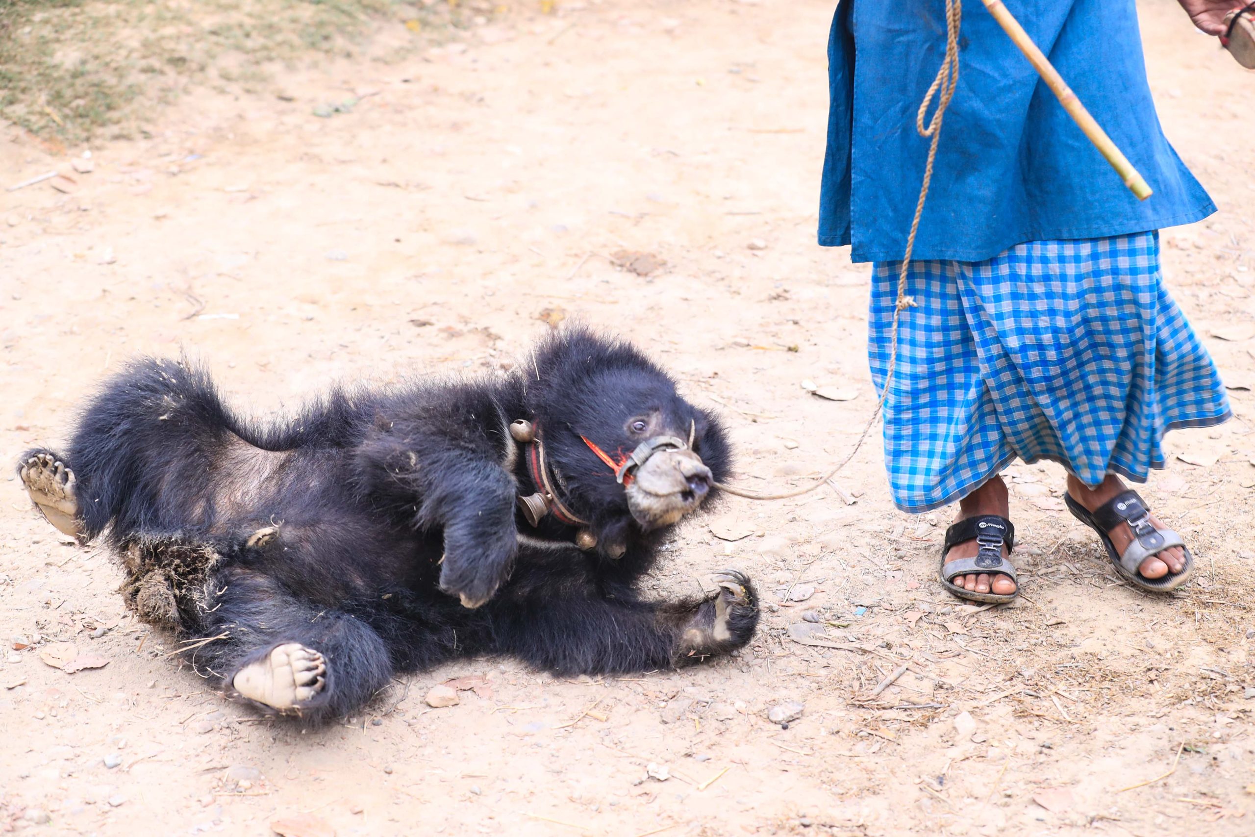 A year old male sloth bear(belonging to India) was seen giving a dance performance in the small village in Siraha. The bear was initially given to its owner in the form of Dowry by his in-laws from India. Primitively, when it was first found, it was in poor health, he was tied by a rope in his muzzle with a metal rod.