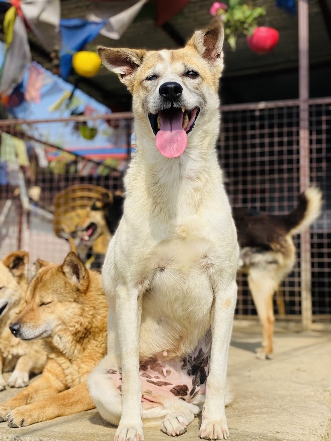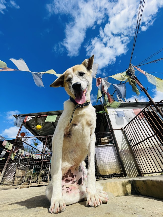 I was found lying lifeless in the street of Kalanki. It’s been a long journey from those dark moments, but I’ve found kindness here at the shelter. Even though I carry the marks of my past with one eye blind and one limb missing, I’ve learned to trust again, slowly and steadily.