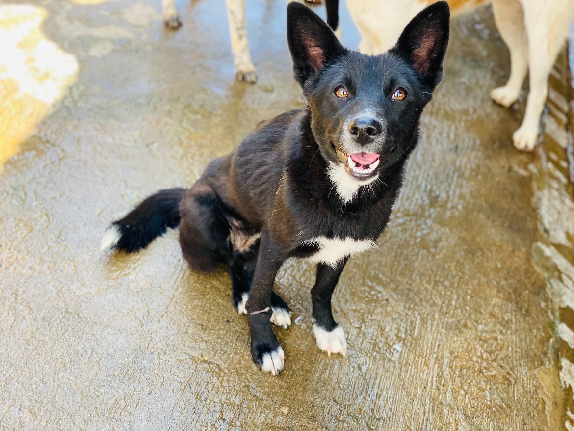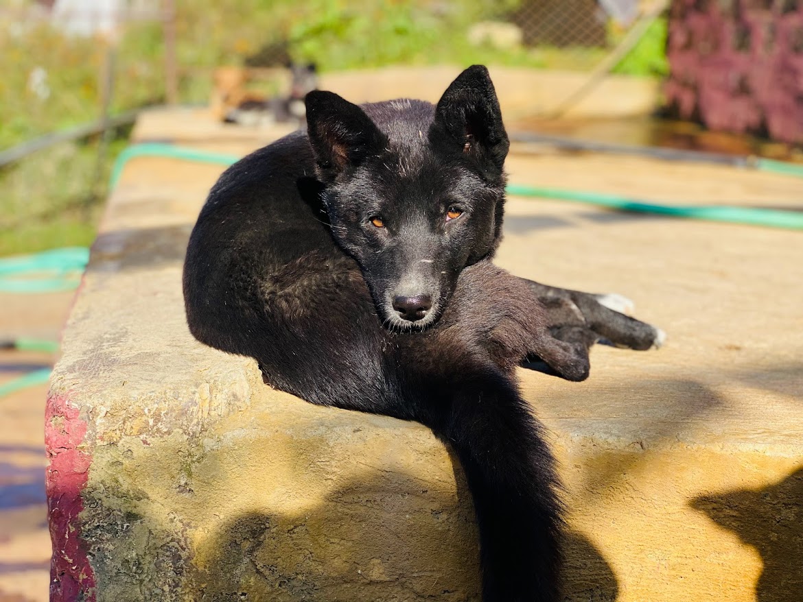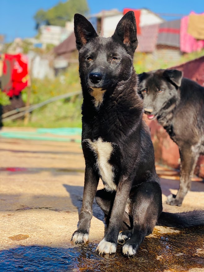 Hey, I’m Kali from the Upstairs block. My name is pretty common here in Nepal, and it literally translates to “Black girl.” But don’t worry, I’m easy to spot, I’ve got these pointy ears, a bit of a pointy mouth, and I almost look like a little fox, but black! I love everyone, and I’m a happy dog who can’t wait to welcome any hooman that comes by.