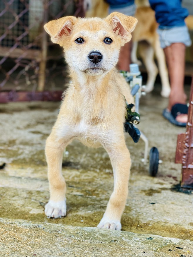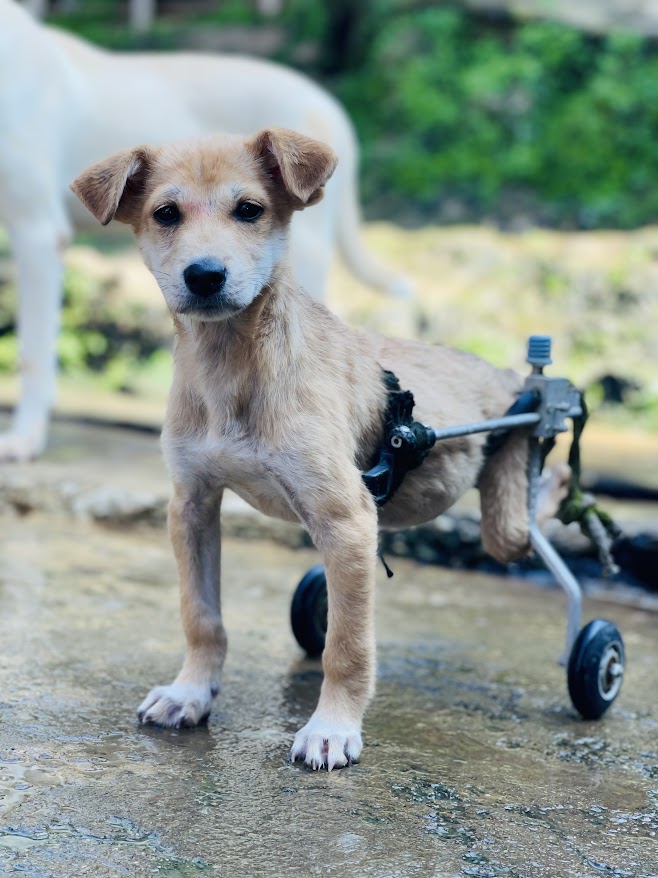 Like many other paralyzed dogs at the shelter, I was hit by a vehicle. The impact left me unable to move my lower back. In excruciating pain, I dragged myself, each step feeling like an eternity. I cried out, desperate for someone to hold me, to tell me that everything would be okay. I just needed reassurance, someone to let me know I wasn’t alone in my suffering. That’s when someone found me, scooped me up, and brought me to Sneha’s Care. They promised that they would take me home once I got better, but sadly, that day never came.