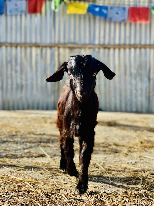Hi. I am Roberto. I had endured extreme cruelty at small age. I was born at a small village, and few weeks later they started tying a red cloth around my neck. I thought it was an accessory that would make me look more attractive. But I was completely unaware of the terror that was destined for me. I got to know that I was born to be sacrificed in the name of Goddess Gadhimai, but I didn’t understand what that meant until they took me away. They shoved me into a vehicle, the red cloth they tied on me was the sign of terror. It was cold evening, and every second passed by, I was being more anxious. I thought I couldn’t survive another day. That’s when one lady came and wrapped me in her warm arms. I was scared but feeling relieved as her aura made me feel secure. She was none other than Sneha who gave me another chance at life. I finally found my forever home, a place where I experienced what love meant, what freedom meant. I am very glad that I am here, with my friend Allen. And we also have Rudrayani in our trio group. We have been enjoying our life since we have been here. I am grateful to this place and my guardian angel for being there for me. I would like to ask the readers to support the place where I stay since its not just us! There are more than 200 animals and 6 different species. I can’t wait to meet you at the shelter and show you my jumping skills.
