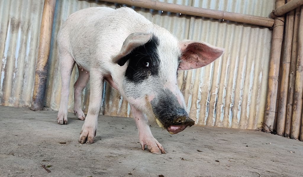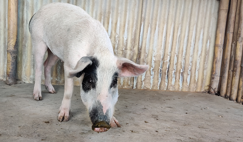 Similar to the stories of my other fellow piggy friends, we were all saved by Sneha Shrestha from Kailali and brought to Karyabinayak Bhanjyang, Lalitpur, where we currently reside. We had no idea of how horribly we were raised. Only when we arrived at the shelter and were given proper care and attention that we realized we were treated unfairly, formerly in life. Six pigs with inadequate space and unhealthy quality and quantity of food. We are really thankful towards Sneha rescuing us, as we were bound to be slaughtered, without even exercising any freedoms in life. The life at the shelter is great, with consistent care and a lot of friends to play with. I am happy here at the shelter but I am taking up resources, which I know is quite difficult to provide. My expenses along with other farm animals keep piling up and a little help from your side can do wonders for us. So will you sponsor any of us and make our lives a bit easier?